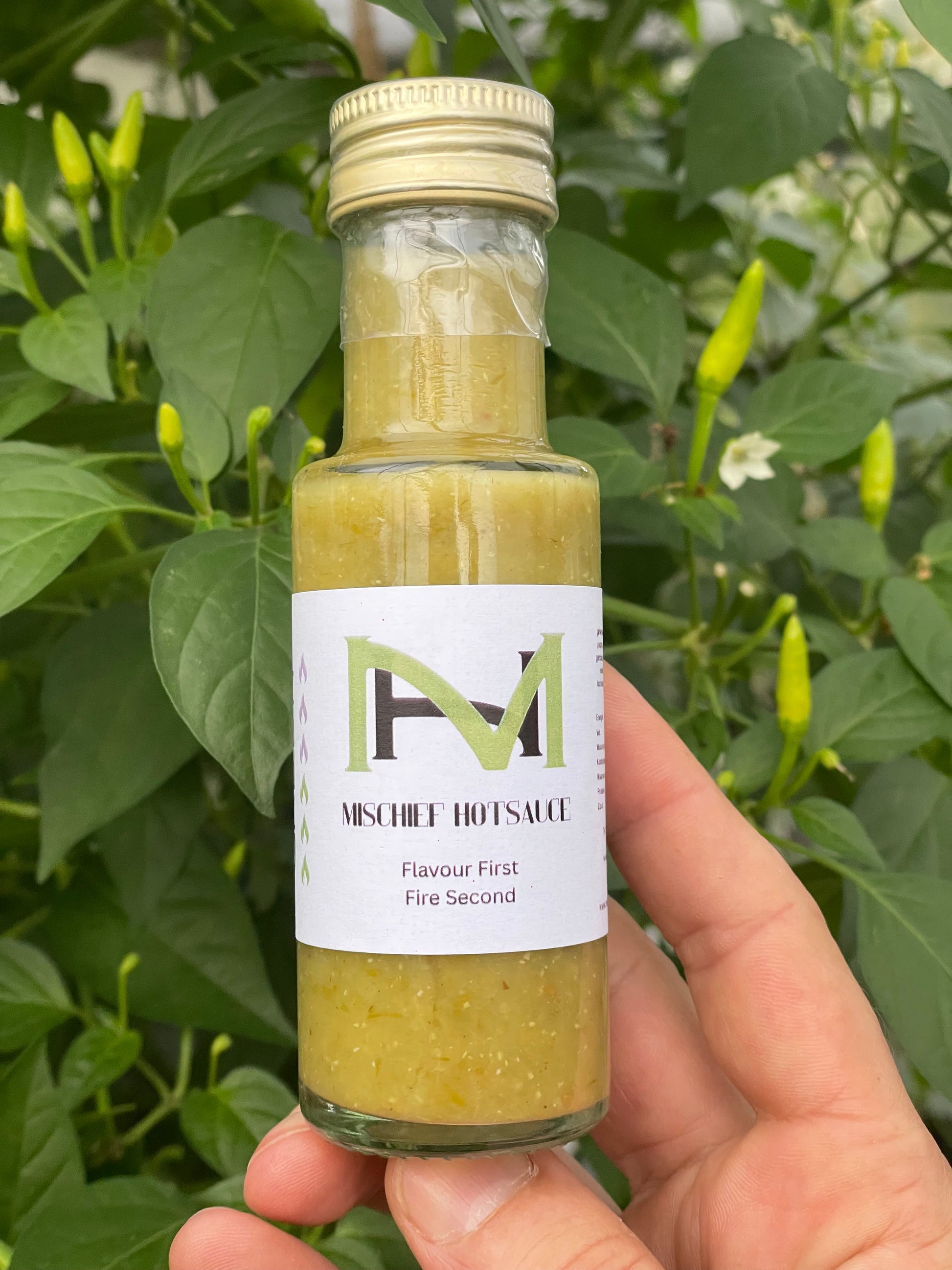 Wat deze hot sauce echt uniek maakt, is de toevoeging van Granny Smith appels. Hun scherpe zuurgraad en frisse karakter balanceren de hitte perfect, terwijl ze een subtiele fruitige ondertoon toevoegen die verrassend verslavend werkt. Het resultaat? Een hotsauce die niet alleen brandt, maar ook echt smaakt. We zeggen niet voor niets: Flavour First, Fire Second!